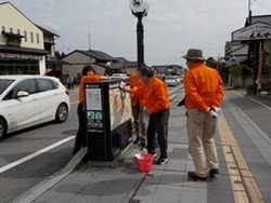 旧日光市街の石屋町街区公園から東町トイレ(神橋)までの両側の歩道に設置されている、公共施設案内板の清掃活動を実施しました。 紅葉シーズンも始まり、日光の街の中はさらに国内外からの観光客でにぎわうことから、 案内板を綺麗に見やすくすることで、おもてなしの心で地域に貢献し、シルバー人材センターのPRをすることで、普及啓発の促進につとめました。 また、当日は下野新聞社からの取材も受けました。